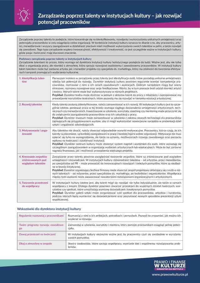 Podstawy zarządzania poprzez talenty w instytucjach kultury